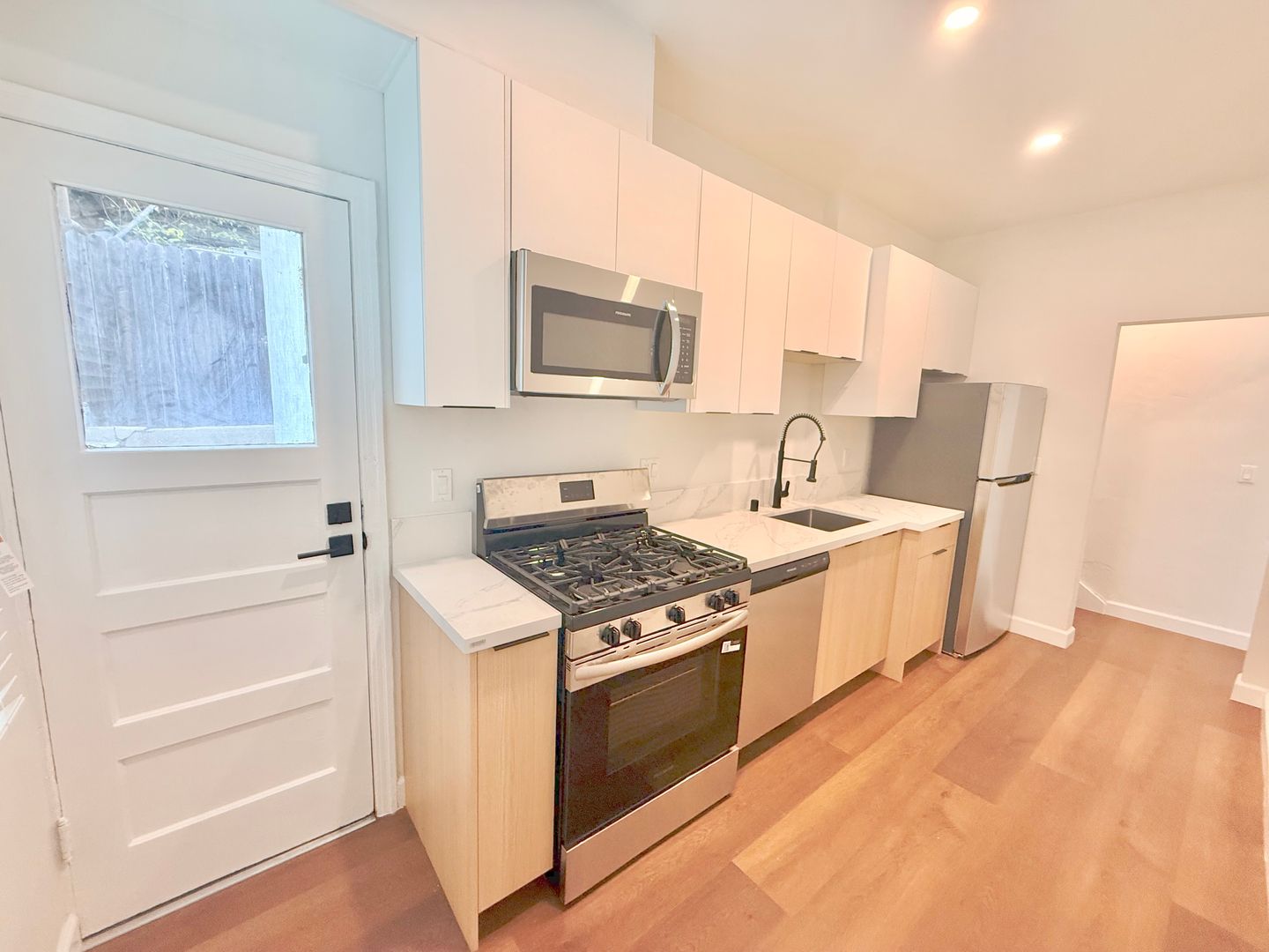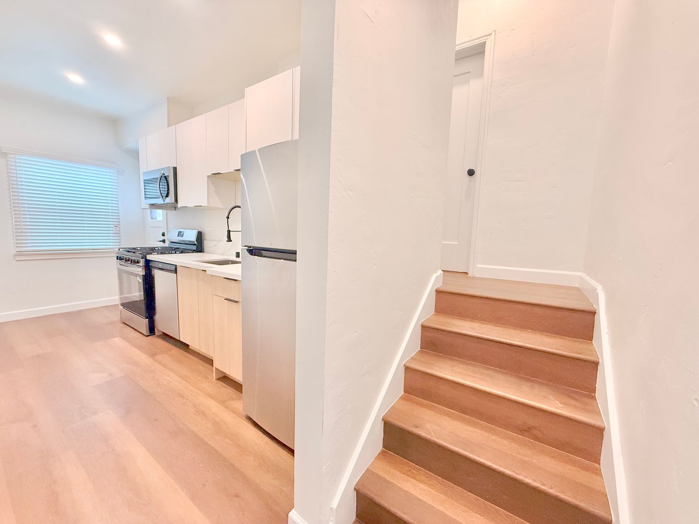 Beautiful & Brand Newly Remodeled Lower 1 Bedroom + 1 Bath in the Serene Hills of Silver Lake of the Prestigious Neighborhood North of Sunset Blvd. This unit features private laundry hook ups, stainless steel appliances, air Conditioner/Heater Mini Split, new windows, & much more! 12 month lease, tenants pay gas/power/water, ample street parking in front, pets ok, available now!